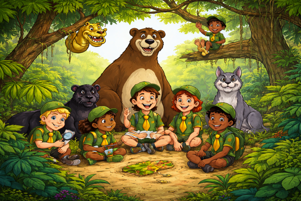 De welpen duiken samen de jungle in! Net als Mowgli of Shanti beleven ze spannende avonturen tussen de dieren. En wat voor dieren! Baloe, Bagheera, Rikki Tikki Tavi, Marala en nog veel meer kleurrijke vrienden wachten op hen.